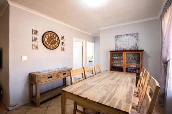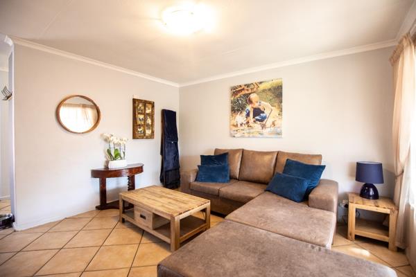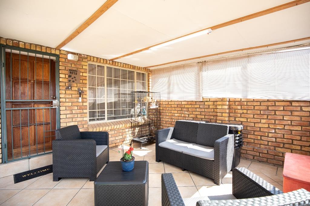 Step outside to discover a generous back patio with direct garage access, as well as an enclosed front patio complete with a built-in braaiperfect for entertaining guests or relaxing, all while overlooking a beautifully landscaped front garden.
