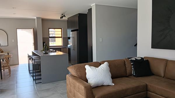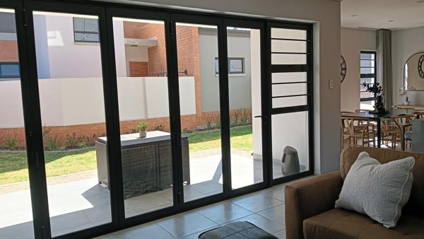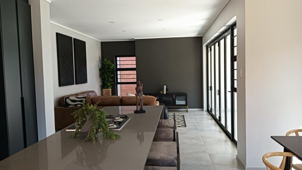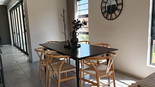 This stunning 4-bedroom home features 2.5 bathrooms and a double garage, complete with expansive stack doors that open onto a tiled patio from the lounge.