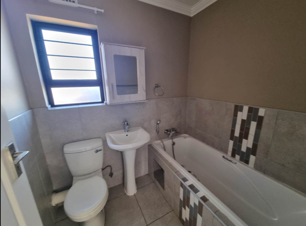 The unit features two well-sized bedrooms, both fitted with built-in cupboards, with the main bedroom offering an en-suite bathroom for added comfort and privacy. A second modern bathroom services guests and the second bedroom, making this home ideal for couples, small families, or professionals sharing.