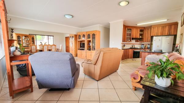 Spacious open-plan dining and living area that flows effortlessly onto a covered patio