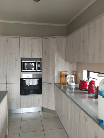 The home offers three spacious bedrooms and two bathrooms, including a main en-suite for added privacy. A stylish kitchen fitted with a premium Smeg gas stove makes cooking a pleasure, while prepaid electricity provides easy utility management. The solar geyser ensures energy efficiency and cost savings.