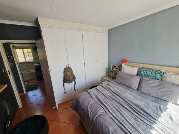 Outside you have a massive garden that runs around the whole unit. There is a lovely patio onside with build in braai, and because you have a corner unit your yard is really amazing.