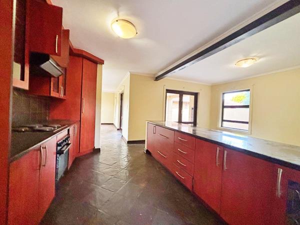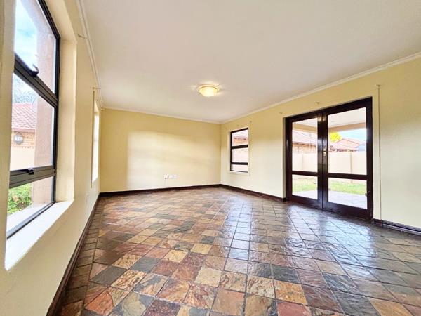 Perfect for entertaining guests, the patio includes a built-in braai and connects seamlessly to the dining room and kitchen area through double doors, allowing for effortless indoor-outdoor living.