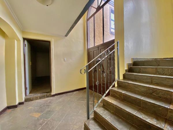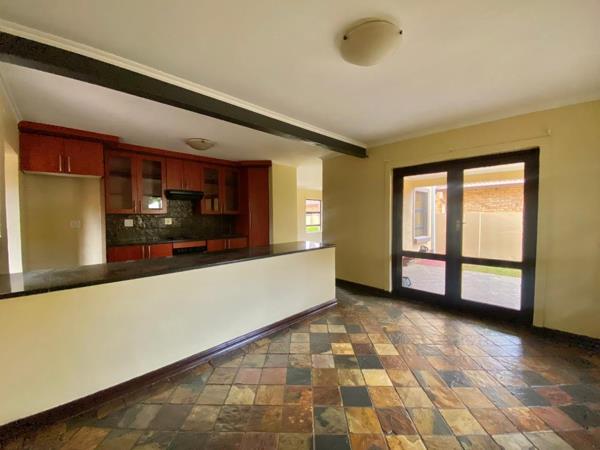 Downstairs, the home offers added convenience with a guest bathroom, as well as staff quarters that include a private bathroom and plumbing for a washing machine. The living areas are designed for both relaxation and entertaining, featuring a large open-plan layout that flows effortlessly onto a covered patio with a built-in braaiideal for hosting family and friends. Double doors connect the patio to the dining and kitchen areas, creating a seamless indoor-outdoor living experience.
