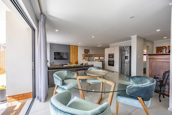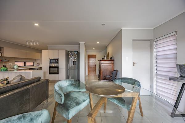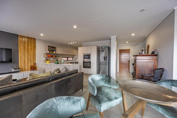 As you enter the home, youre welcomed into a warm and inviting atmosphere characterized by a spacious open-plan layout, perfect for entertaining or enjoying family time. The entrance flows seamlessly into a bright and airy lounge and dining area, with large windows that allow an abundance of natural light to flood the space. The living area extends effortlessly to a well-appointed kitchen, designed with both style and function in mind.
