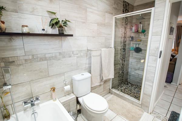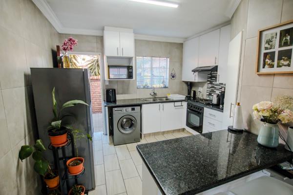 The stylish kitchen is one of the highlights of the property.It features enough space for appliances-something not often found,a sizeable pantry and beautiful flooring.Granite tops,a double zink and a stunning kitchen backsplash rounds it off well.