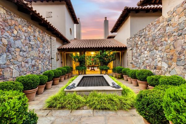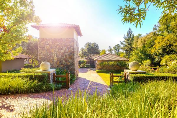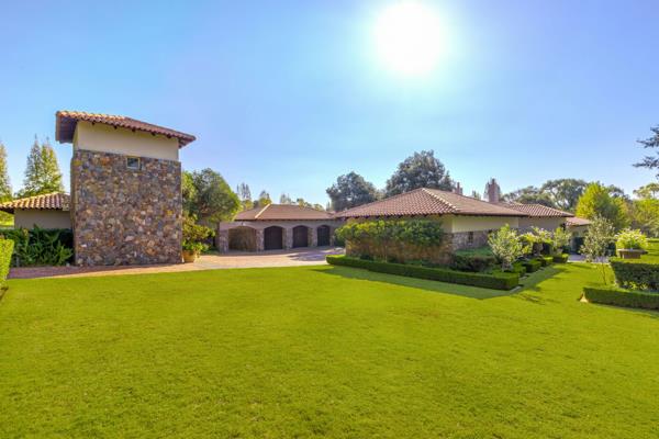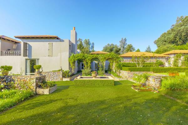 Sustainable Energy: Embrace sustainability with solar panels and inverters, ensuring eco-friendly living and energy independence. Adjacent to a dam adorned with water lilies, another deck provides a picturesque setting for relaxation and reflection. Explore water features nestled within a beautifully designed garden, creating a serene oasis of greenery and tranquillity. A swimming pool, surrounded by natural trees, overlooking the river, deck, and dam, offers a secluded spot for leisure and enjoyment. The 5 luxurious en-suite bedrooms boast garden views, ensuring every awakening is as beautiful as it is comfortable. Nature''s Embrace: Positioned in a cul-de-sac. Celebrated Creators: The architectural genius of Louis Louw and Johan Bergenthuin, combined with the interior elegance by Stephen Falck and the garden artistry of Jan Blom, culminates in a residence that is not just a home but a masterpiece. Hallmark features: Six garages with built-in cupboards, along with a three-floor tower.