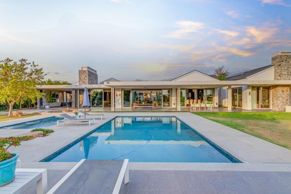 Nestled in the stunning setting of Blair Atholl Golf & Equestrian Estate, Fine & Country presents an exquisite 1320sqm fairway frontage property to our Exclusive Mandate collection with sunset views and rolling Magaliesburg hills offering a balanced family lifestyle with sophistication and tranquillity. Boasting direct access to the championship golf course via connected paths on the fenced property, the estate offers high security luxury estate living in a low density setting where no fence is shared with neighbours and nature surrounds homes creating a natural sense of privacy. The home is unique with its multiple living spaces in the landscaped gardens from the single storey main residence to two cottages and endless possibilities for entertaining from the lookout deck, bar, heated spa pool, swimming pool, two fire pits, games room and massive entertainers patio.
