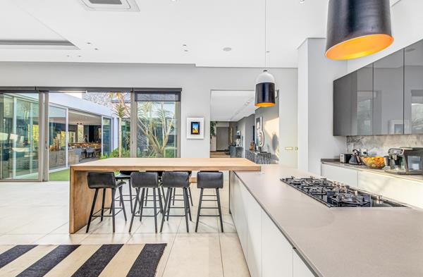 The stylish gourmet kitchen has two ovens, a gas stove top, a huge pantry and is completed with separate laundry and scullery spaces. There are two oversized double garages, positioned well to access the main house. A central courtyard brings in natural light to the kitchen and connects the studio cottage and outdoor sports area.