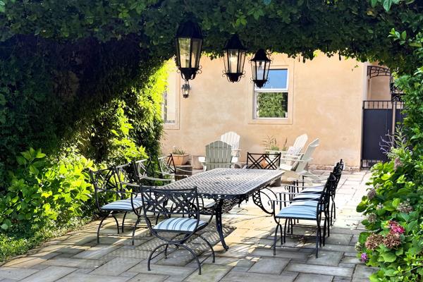The spacious country kitchen, a chef''s delight, features a bespoke center island and a free-standing stove, perfect for preparing meals with ease. The open-plan living area seamlessly connects to a family dining room, complete with a wood-burning fireplace for cozy winter evenings. Step outside to the al fresco dining area within the courtyard, where the ambiance of the Italian countryside greets you, accompanied by endless views of the garden.