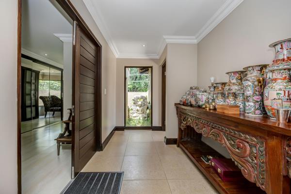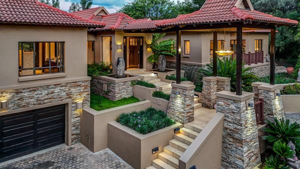 Set along a tranquil lakefront in Blair Atholl Golf & Equestrian Estate, this remarkable Bali-styled residence unfolds like a private sanctuary-where nature, architecture and serenity come together in perfect harmony. Just minutes from the estates main gate, the home rests on an expansive stand framed by lush pathways, manicured gardens and uninterrupted water views that stretch out like a natural canvas.