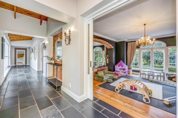 Flowing from this central space, the main lounge opens seamlessly onto a covered patio featuring both lounge and dining areas - perfect for indoor-outdoor living. The patio overlooks the garden and enjoys the peaceful atmosphere of this prime estate setting.