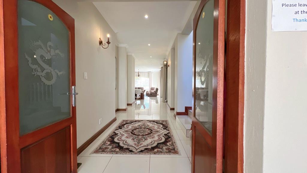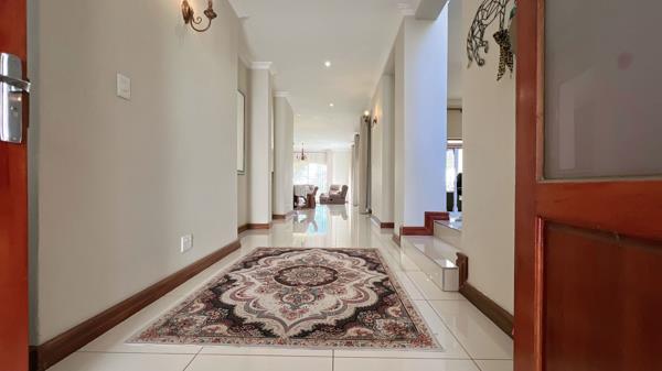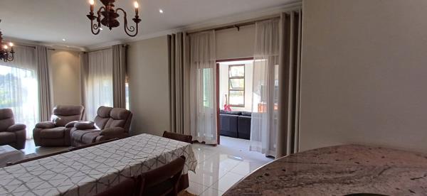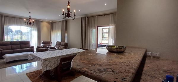 Fairway View Tranquil. Lovely home on the fairway, with beautiful views and sunset. Come and enjoy the tranquil with the long entrance hall, leading to the living areas that open on to the covered patio. The open planned kitchen has a scullery, with gas and electric stove. One of the living lounges has a fire place. Office space set on a private corner downstairs. All bedrooms are north facing, which is wonderful for the sun moments. The two bedrooms upstairs both open on the balconies, with views of the backyard and fairway. The spacious main bedroom with a large en-suite. Do come for a refreshing look at this beauty.