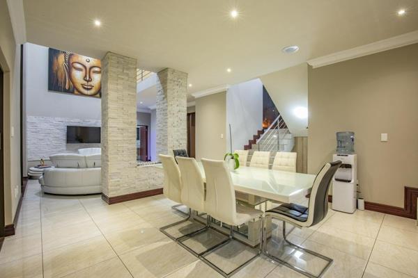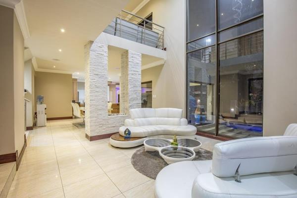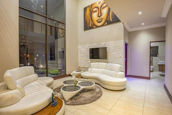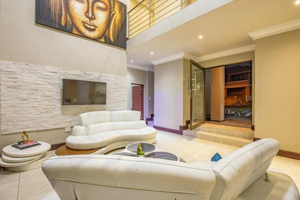 Experience unmatched elegance in this 4 bedroom masterpiece in the prestigious Blue Valley Golf Estate. From the grand entry with a captivating water feature to a formal lounge bathed in natural light, every detail exudes timeless luxury. The heart of the home is a high-end kitchen, complete with Caesarstone counters, a gas hob, and a separate scullery for seamless organization. Adjacent, a formal dining area offers the perfect spot for gatherings. For leisure, the entertainment space boasts a bespoke prep area overlooking a lush garden and pool, ideal for outdoor hosting.