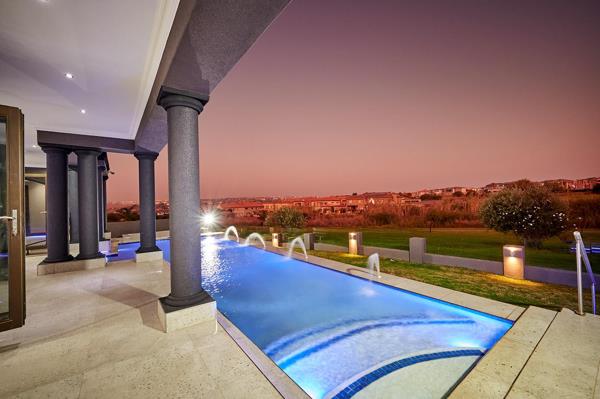 On the ground-level, the home has impressive living space, with a large designer kitchen in the heart of the home. The Caesarstone tops, built-in appliances, walk-in pantry & scullery are fitting for this dream home. The gym room, together with the shower and sauna, forms your in-house health room. The entertainer''s lounge and separate TV/cinema lounge opens onto the patio with pristine heated pool, that overlooks the course.