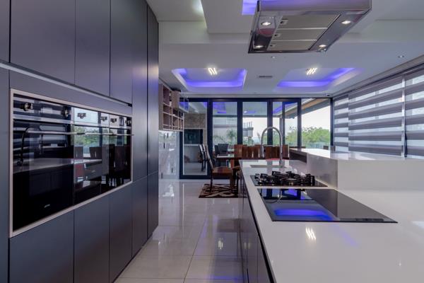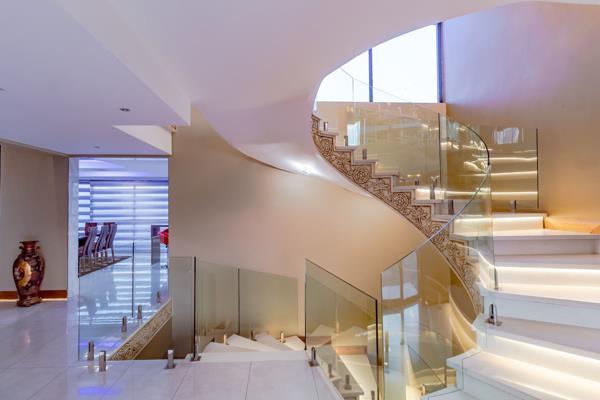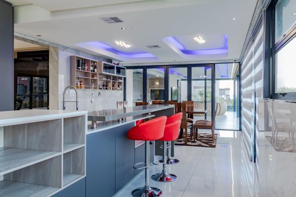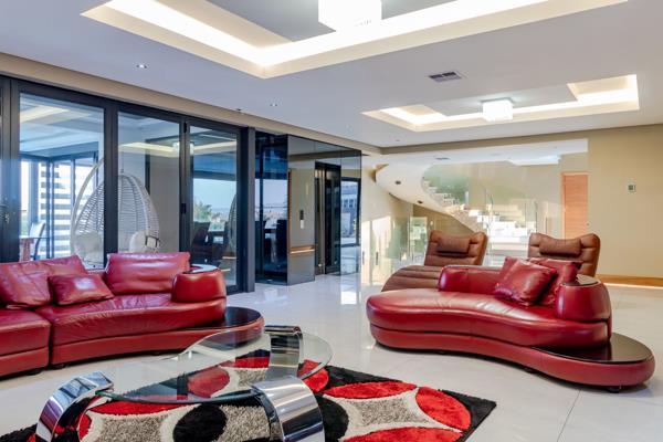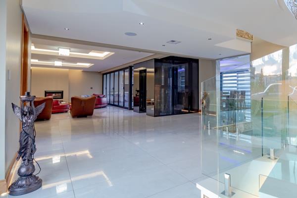 A World Of Luxury, Elegance And Prestige. This ultra-modern, infinitely stylish mansion is designed and constructed with perfection in mind. Built on three levels connected by a bespoke spiral staircase, and an opulent lift - this home exhibits graceful flow and the ultimate display of a lavish lifestyle. The captivating double-volume entrance sets the tone for a home that is the epitome of refined beauty with elegant proportions. The spacious central living area leads to the state-of-the-art kitchen, complete with gourmet integrated appliances, modern soft-close cabinetry, and a separate pantry and scullery. Going past the dining room, the grand entertainment patio makes the perfect space to end off a busy week while relaxing with friends and family and taking in the peaceful 180-degree views. And the rim-flow swimming pool with fountain jets is sure to bring endless summer joy.