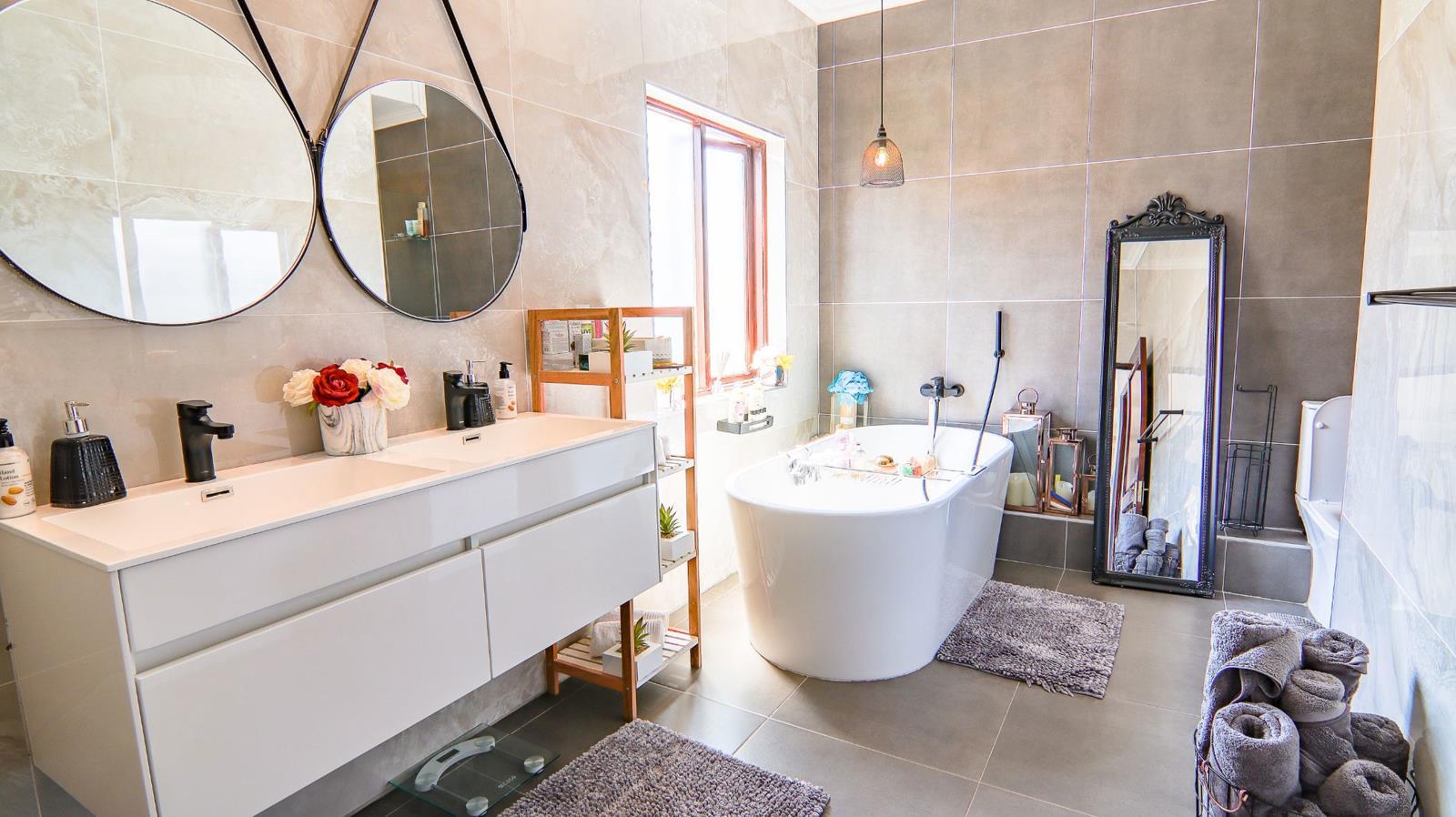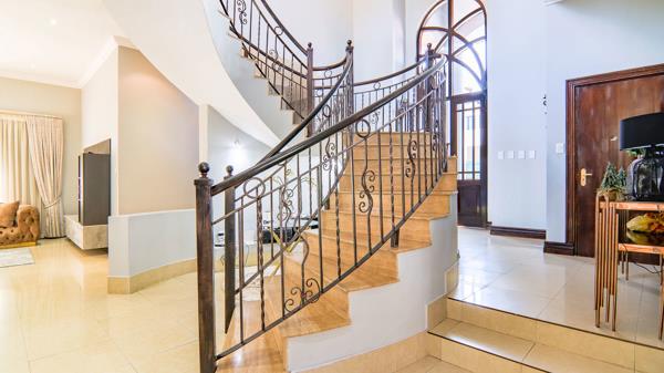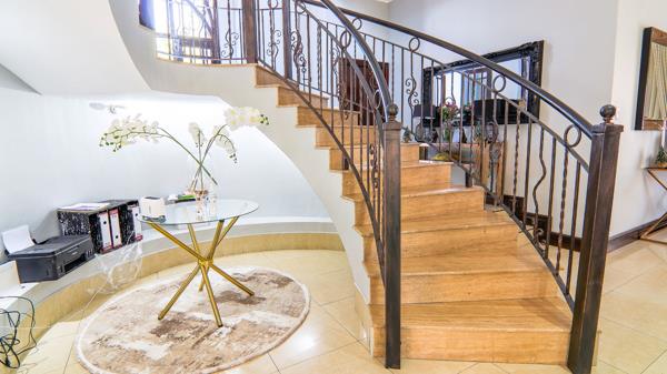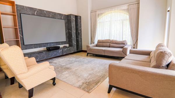 Modern Family Home. This ready to move in home awaits your occupation, with welcoming entrance with double volume. this leads to open planned living spaces from the private lounge to the dining and tv area. The kitchen with very high ceilings opens to the garden through sliding doors. All living spaces open to the patio, facing the lovely garden, with extension of the garden for kids to play. You can host lovely gatherings with the space available. Total privacy when coming to backyard. Can turn under staircase into a wine cellar. Dedicated office for working from home. Guests are welcomed at the downstairs bedroom with a large ensuite bathroom. Upstairs accommodates everyone with their own bathrooms and two bedrooms share a balcony. Main bedroom with a large walk in closet and a beautiful ensuite. Literally a space to raise your children.