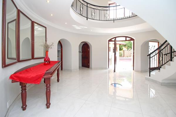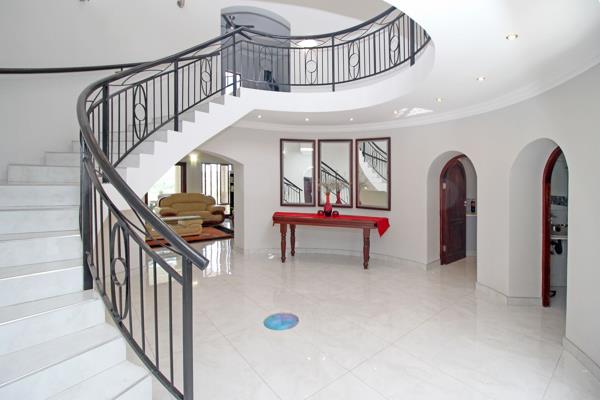 The residence is not only a testament to luxury but also a showcase of functionality. Special features include a double-volume entrance hall, a fitted wine cellar, and two staff quarters with an en-suite bathroom. Energy efficiency is a priority, with a gas stove, gas braai, three gas fireplaces, a generator, and three heat pumps for three geysers.