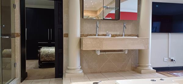 Large Modern Family Home. This 4 bedroom home will appeal to the buyer seeing quality over quantity. The living areas flow easily and are ideal for the family that loves to entertain. The kitchen is designed with functionality in mind. The entertainment area consists of a fitted bar, overlooking the fairway. The home has ample parking space, 3 garages with a carport for a trailer or golf cart. Back room can be converted into a mancave or a big store room. You can never go wrong these days with an inverter, batteries and solar panels for backup. The two jojo tanks for water storage is another major plus, that with water filter you are ready to start living.
