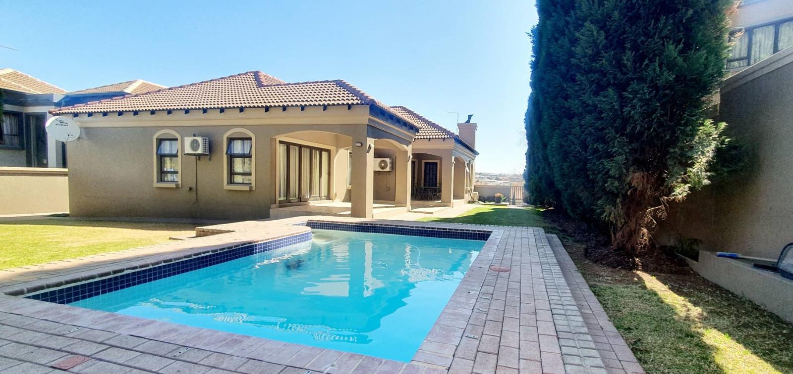 Step into the embrace of this exceptional 4-bedroom haven, nestled within the prestigious Blue Valley Golf and Country Estate, where a gentle slope lends an air of timeless elegance. Below, a spacious double garage and private staff quarters offer both convenience and seclusion, ensuring every need is thoughtfully attended to.