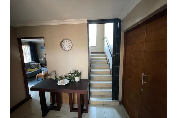 The neatly tiled laundry room doubles up as a storage room. A spacious double garage equipped with an automatic door and covered space for two more vehicles, as well as lots of extra parking spaces add to providing convenient parking for guests as well. With the constant threat of load shedding, this property offers peace of mind with an inverter and a prepaid electricity system.