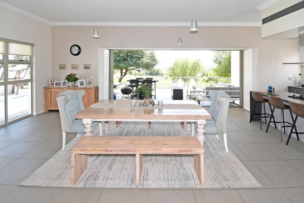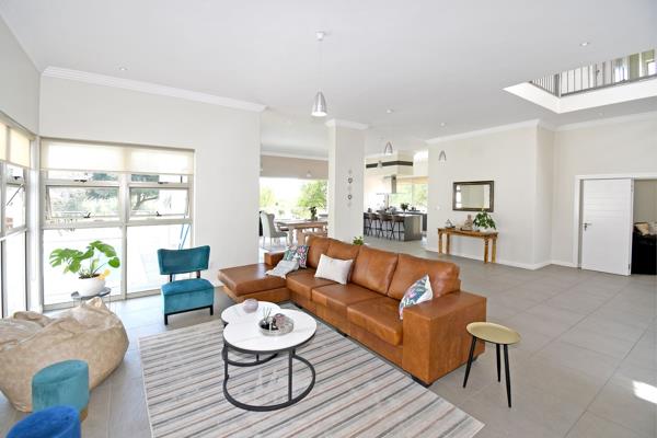 At the heart of the home is the kitchen, a true showstopper. Featuring a Siemens 5-plate gas hob, Caesarstone countertops, and built-in appliances for ultimate convenience, its designed for both functionality and flair. A spacious scullery offers generous storage, keeping the kitchen area clean and organized.