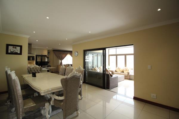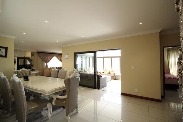 The entrance hall welcomes you into a home filled with light, space, and thoughtful design. A beautifully crafted staircase leads upstairs, while the flowing layout invites you into the spacious living and entertainment areas. At the centre of the home is a refined dining space that opens into an enclosed entertainment roomperfect for hosting guests or enjoying relaxed family evenings, all with serene garden views.