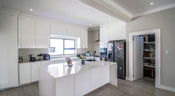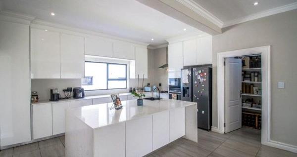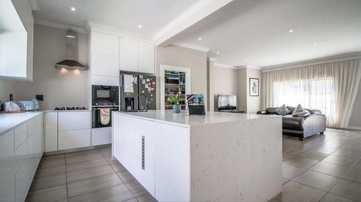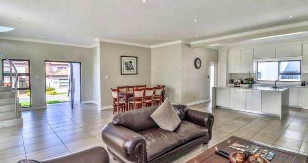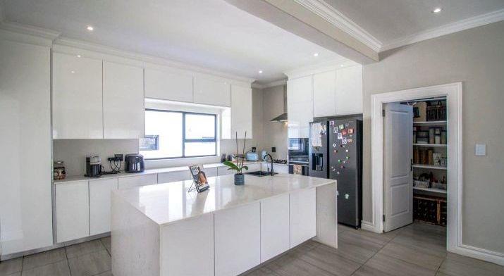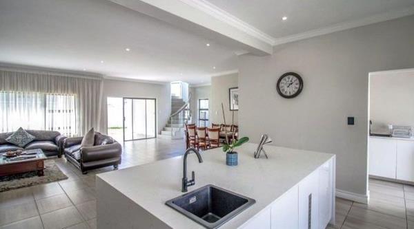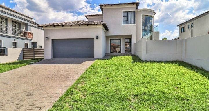 Discover an exquisite modern residence nestled within the prestigious Blue Valley Golf Estate in Centurion, South Africa, offering an unparalleled lifestyle of sophistication and comfort. This architecturally striking home, with its clean lines and distinctive curved glass feature, presents an immediate impression of contemporary elegance and kerb appeal, complemented by high perimeter walls ensuring utmost privacy and security.