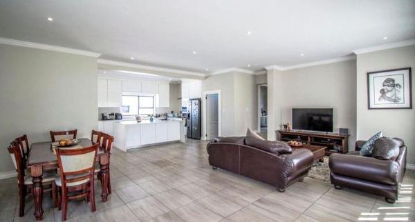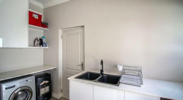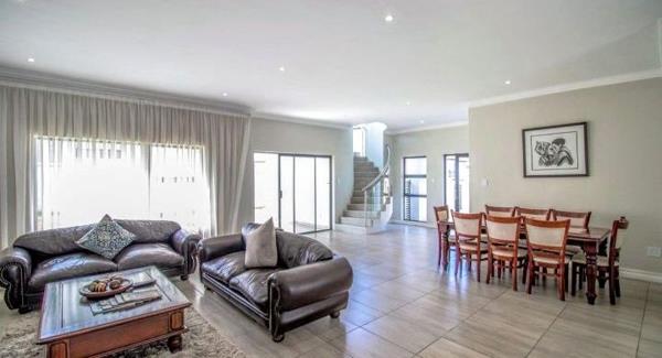 Beyond the interiors, the residence extends its allure with a private garden and a charming lapa, perfect for outdoor entertaining. Practical amenities include an integrated double garage and additional paved parking for three vehicles. This home is thoughtfully equipped with modern conveniences such as a battery inverter, solar geyser, and fibre connectivity, ensuring sustainable and uninterrupted living. The estate itself offers 24-hour security, access gates, and a clubhouse, providing a secure and vibrant community atmosphere with access to a premier golf course. With domestic rooms and wheelchair-friendly access, this property caters to every need, welcoming pets to complete the family picture.