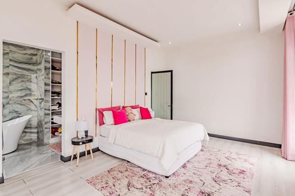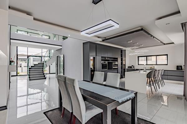 Modern Living. Do come and enjoy this fantastic home, for a large family. With the double volume entrance leading to all the different living spaces. Open planned living, kitchen ,dining and lounge areas interleading to one another, flowing seamlessly. and pool. The kitchen and dining open to the backyard and pool areas. Lovely fire pit for those late chilling nights. The downstairs offers a large guest bedroom with en-suite.