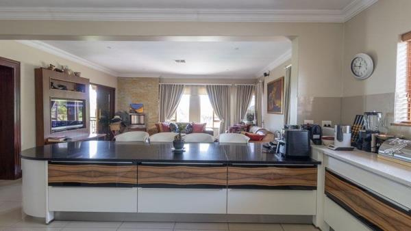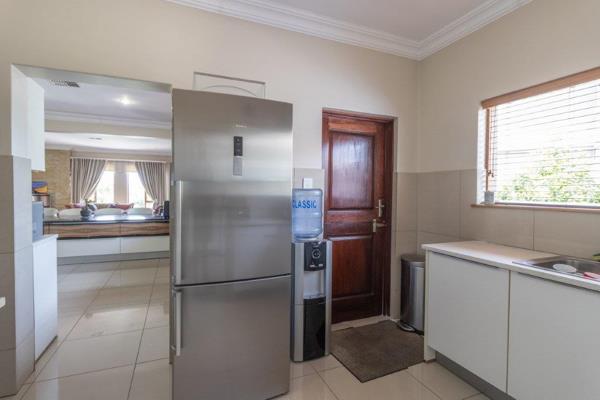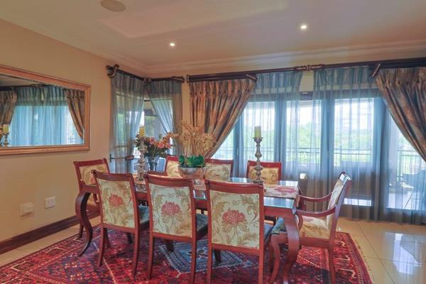 Quintessential triple storey mansion with a lift located on the fairway with some of the most breath taking views that the estate has to offer. The elegant home boasts a double volume entrance with high ceilings, two reception areas, family room, formal lounge, dining room flowing onto a palatial kitchen with ceaser stone tops, scullery, pantry and laundry. Downstairs features a guest bedroom with a full en suite bathroom and a guest loo. The other three bedrooms are upstairs with en suite bathrooms, main bedroom with a walk in closet. The home has an entertainment area downstairs with a lounge a home office with lots of storage area. Living areas open onto a patio with built in braai flowing onto a large pool. Added amenities include staff quarters, four automated garages, automated irrigation system, back up generator and solar system