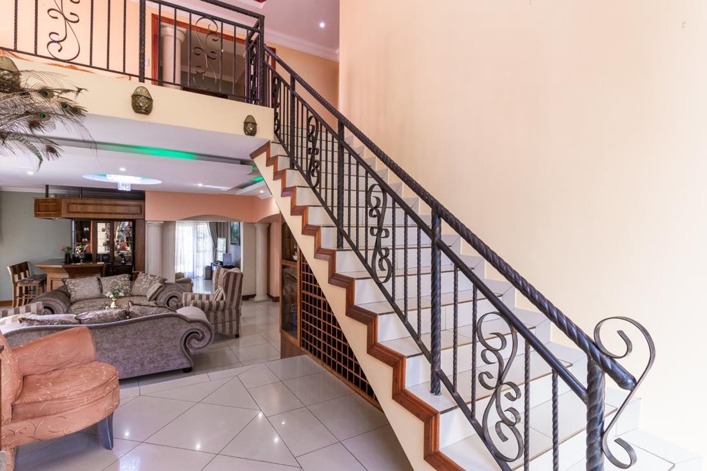 Charming family home in the heart of Blue Valley Golf Estate boasting 6 bedrooms, 5 bathrooms, main en suite with a walk in closet, guest bedroom with en suite bathroom, 2 common bathrooms with spa baths, pyjama lounge, study, double entrance hall leading onto family room, dining room, formal lounge, kitchen with scullery and pantry, double automated garages, guest loo, staff accommodation patio with built in braai, swimming pool, well maintained garden with irrigation system. Ideal for the big family.