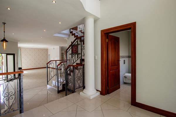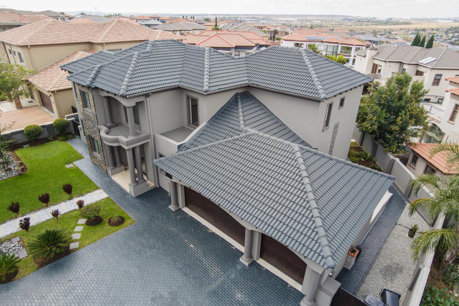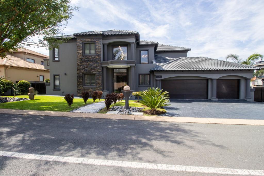 Impeccable home in the heart of Blue Valley Golf Estate with top end finishes available for sale . The home boasts four spacious bedrooms all with en suite bathrooms, main with walk in closet, pyjama lounge, double volume entrance flowing onto dining room, family room, formal lounge, modern kitchen with scullery and pantry, 3 automated garages, guest loo, staff accommodation covered patio optimised into a living room with stack door, swimming pool with top end decking with a water feature an a pergola. The home has automated irrigation system and back up solar power.