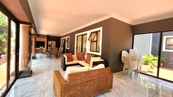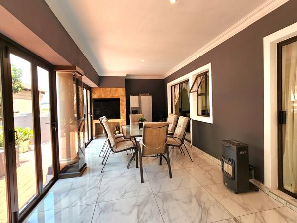 The ground floor offers three expansive living areas, a formal dining room, a guest lounge, and a cozy family space all flowing seamlessly onto a recently renovated entertainment patio with stack doors, stylish tiling, and a built-in braai. Overlooking the manicured garden, this is the ultimate indoor-outdoor lifestyle setting.