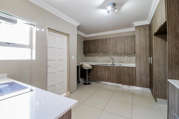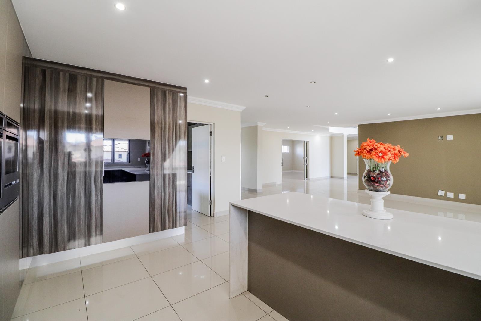 Well-situated kitchen, a beautiful island centerpiece, quality fitted appliances, eye-level oven, hob, microwave, a huge scullery, and pantry. Enjoy this modern kitchen with luxurious appliances leading into a 12-seater dining room.