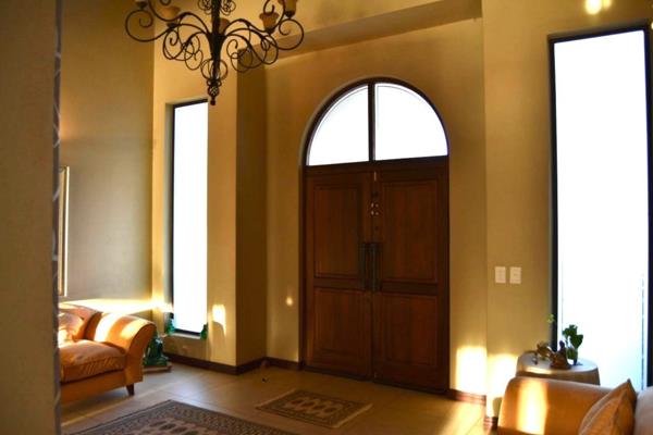 The main entrance hall with featured wooden doors and high ceilings sets the scene for luxurious estate living. The open plan living areas enjoy an abundance of natural sunlight flowing into the dining room and lounge areas perfect for those long Sunday naps. IT has a separate guest loo at the entrance With an expansive corner stand land, there is ample space and privacy for the 4 car garage, entries on 2 streets and additional golf cart garage.