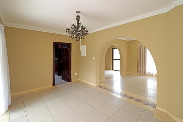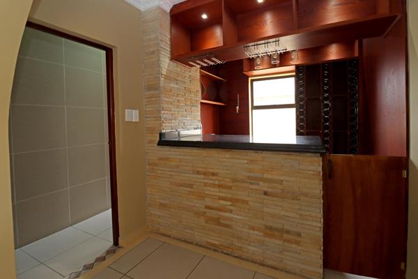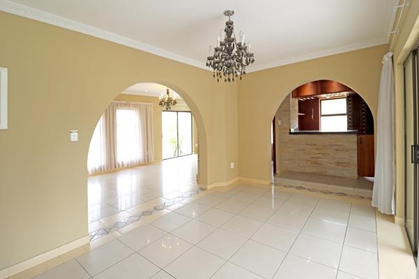 The dining, formal and TV lounge areas, and a bar flow effortlessly into a sunroom and covered patio with a built-in braai perfect for hosting, relaxing, or simply enjoying the outdoors.