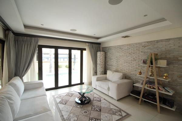 Upon entering, you are welcomed by expansive living spaces, including two lounges and a formal dining room, all bathed in natural light. The heart of the home is the sleek, modern kitchen, featuring a stylish center island, a cosy breakfast nook, and a separate scullery for added convenience.
