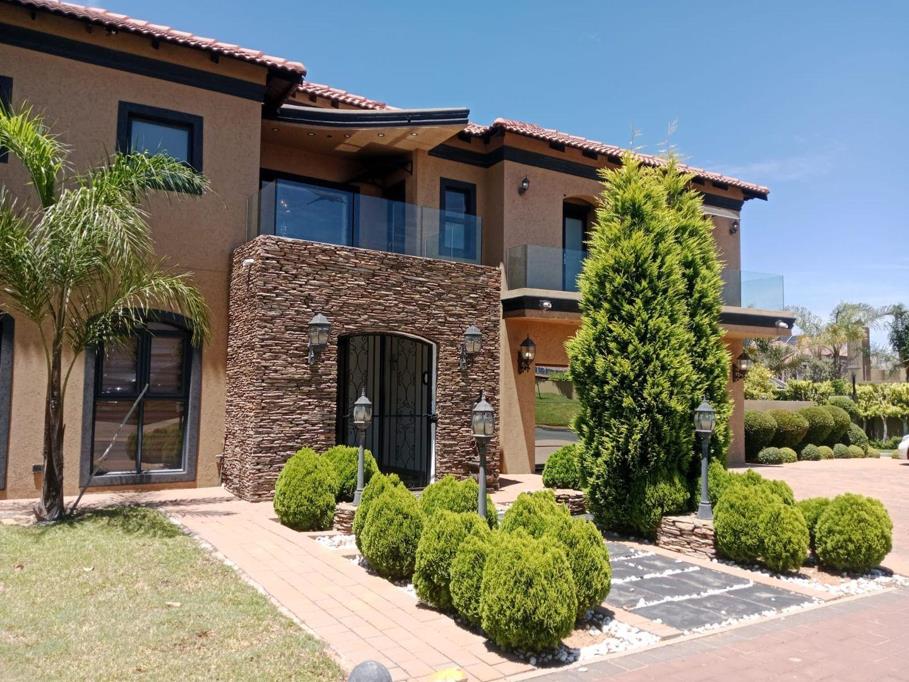 This is stunning heart designed Elegant home in one of the best Golf Estates in Gauteng. The 4 Bedroom, 4 Bathroom home has a covered entertainment area which can be easily converted into a gym or a bar. A beautifully timeless modern farm style kitchen with open spaces, 2 Lounges and a Dining room. In the winter this home provides an anthracite heater which warms up the whole ground floor area of the home. If you are person of space, definitely this is the home for you. The main bedroom occupies half of the 1st floor giving a whole movement and a private lounge within your bedroom. Swimming pool has rubber decking and water feature that can be manually regulated. An outside room with its own shower and 24 hrs security.