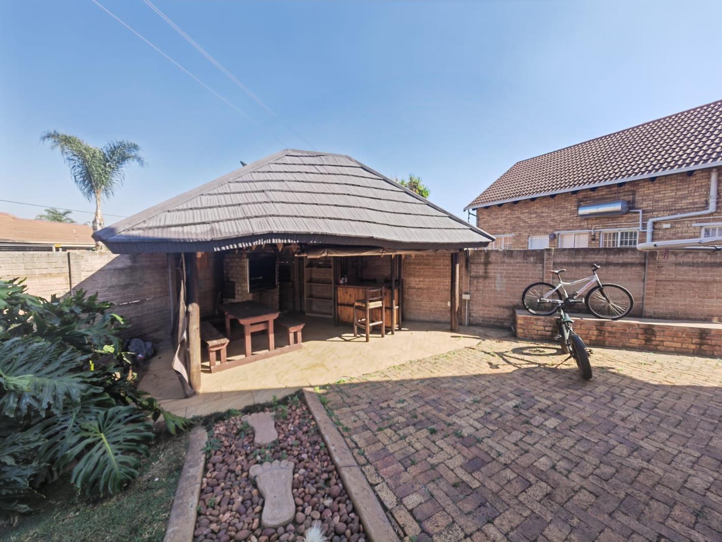 Outside, the exterior features an irrigation system on a timer, and water is conveniently included with the levies. The revamped lapa, finished with low-maintenance Harvey tiles, includes a double built-in braai - perfect for entertaining. An old Wendy shed provides additional storage for gardening equipment.