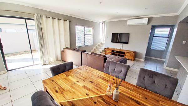 Heres a polished, professional rewrite of your listing while keeping it factual and appealing:***Sole Mandate***This neat and well-maintained property offers comfort, style, and practicality in a sought-after area.**Entrance**A paved walkway leads to the wooden louvre-style pergola and welcoming double doors. The entrance hall features a striking double-volume ceiling with a high window that floods the space with natural light.**Living Areas**The spacious open-plan lounge and dining room are designed for easy living. Large windows and a sliding door create a bright, airy atmosphere. The lounge is well laid out for a television setup and includes an air conditioner for warm summer days. The dining area is generously sized, and a guest toilet adds convenience. The living space flows onto a tiled, roof-covered patio that is open on three sidesperfect for outdoor entertaining.**Kitchen**Modern and elegant, the kitchen is fitted with light-toned cabinetry and beautiful white Caesarstone countertops. A breakfast nook adds casual dining space, while a walk-in pantry and ample cupboards provide excellent storage.**Main Bedroom**Located upstairs, the main bedroom features a large sliding door that opens to a private patio, filling the room with natural light and garden views. It includes an air conditioner and a stylish en-suite bathroom with his-and-hers basins, a bath, shower, and toilet.**Additional Bedrooms**Two well-sized childrens bedrooms upstairs are fitted with built-in cupboards and accommodate double beds comfortably. They share an attractive communal bathroom with a spacious shower, basin, and toilet.**Fourth Bedroom / Office**A versatile fourth bedroom is situated outside the main house and includes its own en-suite with a shower, basin, and toilet. This space can be used as a guest suite, office, or staff quarters.**Additional Features*** HOA levy: R943 per month* Window blinds included* Energy-efficient heat pump geyser* Three air conditioners* Double garage* 24-hour security-controlled access* Excellent location with quick access to main roads, Mall @ Reds, and Forest Hill Shopping Centre (10 minutes away)---Would you like me to make it **shorter and punchier** (great for online property portals) or keep this **detailed version** (ideal for brochures and direct marketing)?