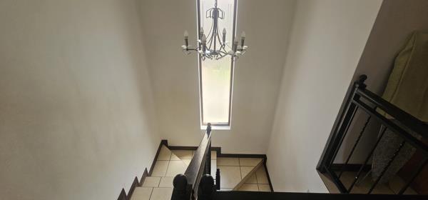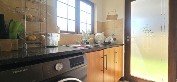 Downstairs, the home boasts an inviting open-plan living area with a large lounge and cozy dining space. The well-appointed kitchen features granite countertops, a separate scullery and a pantry cupboard, offering ample storage and functionality. A guest toilet is conveniently located on the ground floor.