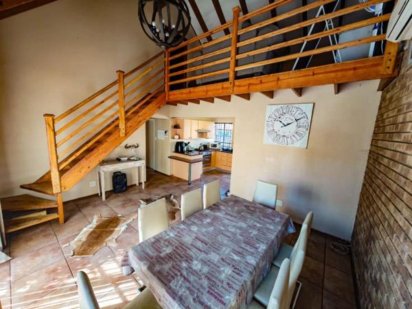 Double-storey three-bedroom townhouse featuring a spacious lounge. Open plan lounge and dining area. Fitted kitchen. Private study. Double carport. Well-kept garden with irrigation. Cosy lapa with built-in braai. Located in a secure, pet friendly complex. The seller has disclosed that the air-con and electric fence does not work. Onus on the purchaser to repair. Tenanted. Rental income R11 000.00 per month. Escalation clause: Two-month notice.