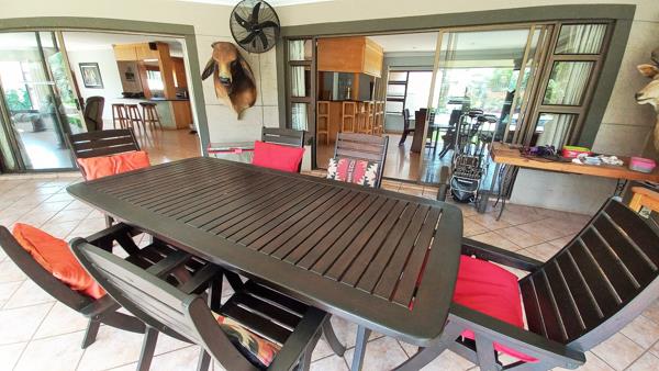 connect the interior to this expansive outdoor space, which features a substantial built-in braai and ample room for gaming tablesperfect for