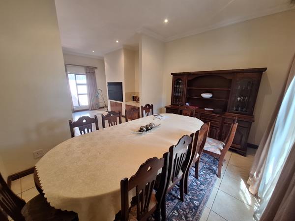 Step inside to generous, light-filled living spaces designed for both relaxed family living and effortless entertaining. A large lounge with a cozy fireplace creates the perfect atmosphere for cooler evenings, while the expansive living area with an indoor built-in braai invites year-round gatherings with family and friends.