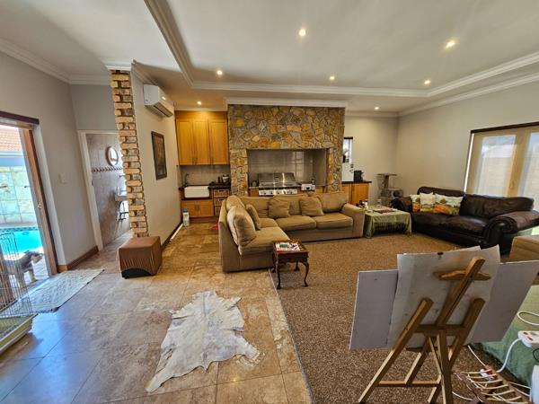 Outdoors, youll love the covered braai area, sparkling swimming pool, and inviting chill zoneperfect for entertaining or relaxing. The property also offers a double garage, additional parking for two vehicles, and practical extras like a water tank, solar panels, and a backup battery/inverter system for peace of mind.