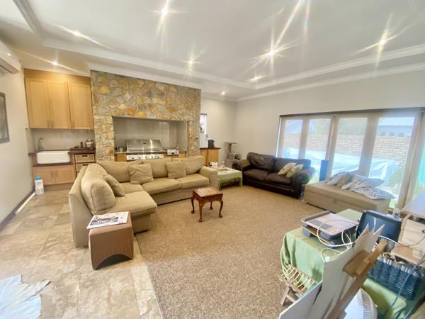 The modern kitchen is a true highlight, complete with a scullery and a large pantry - perfect for any familys needs. The flow continues into a spacious dining area, a dedicated study, and a grand lounge featuring a built-in braai, making it an entertainers dream.