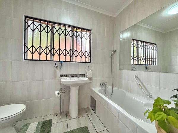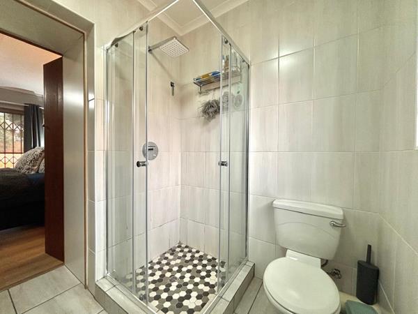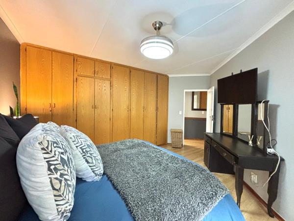 There are three comfortable bedrooms with built-in cupboards, and two well-appointed bathrooms, including a main en-suite for added convenience.
