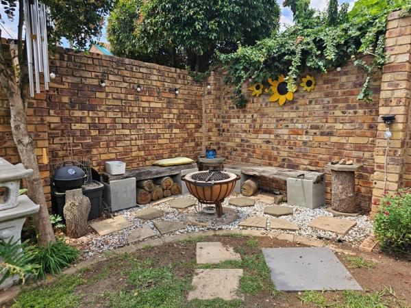 From the living area, stroll out to your private garden oasis a beautifully maintained, green space designed for easy living and entertainment. Enjoy the covered and fully paved patio with louvre-deck roof, built-in braai, and a cosy fire-pit boma tucked in one corner the kind of outdoor setup that turns entertaining and weekends into memorable occasions with family and friends.