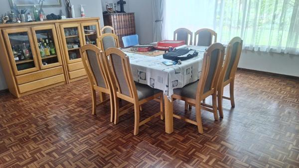 Step outside to a large covered patio with awnings the ideal spot for relaxing or entertaining. The lush garden surrounds a sparkling swimming pool and a lapa, creating the perfect entertainment area for friends and family. With six carports, theres plenty of parking space for everyone.